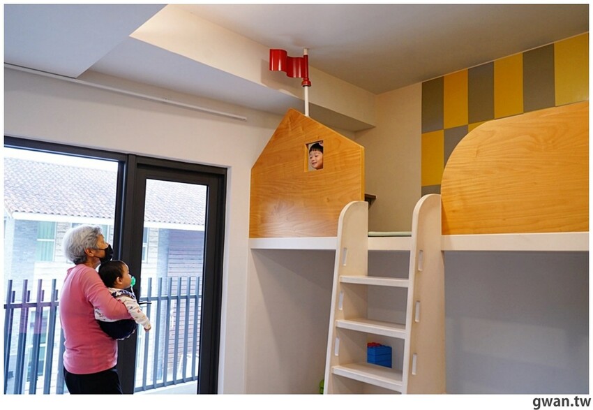 床鋪的部份是以上下鋪為主,可以讓小朋友睡三面靠牆的下鋪會比較安全!