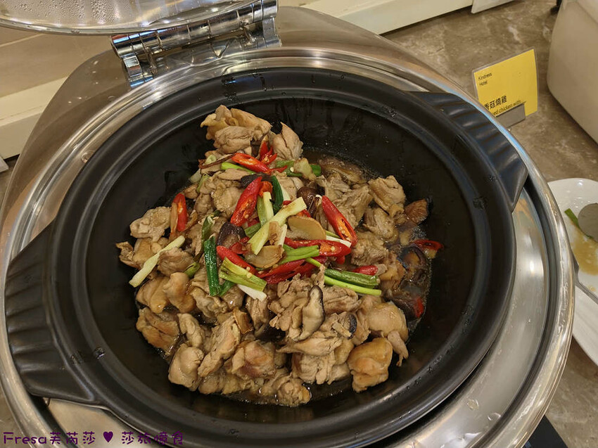 拿了生菜沙拉、熱炒蔬菜和香菇燒雞.