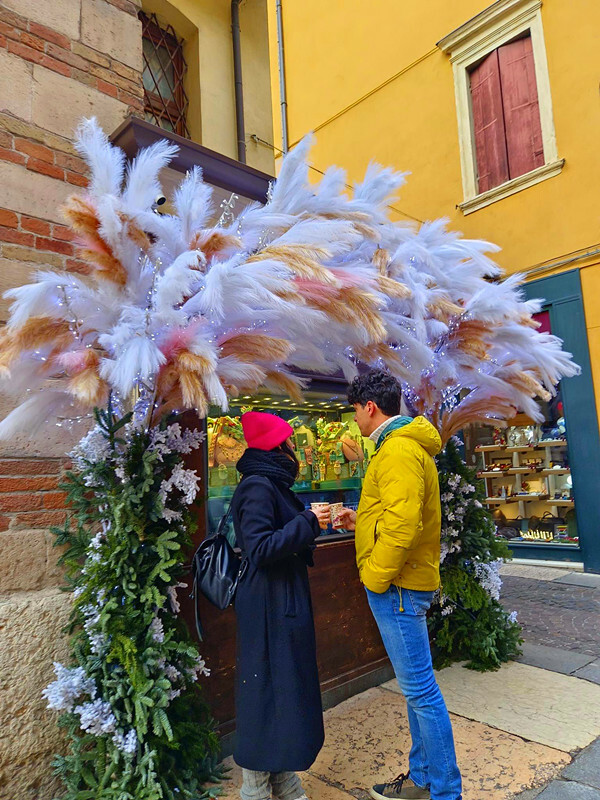 維羅納的圓形競技場旁邊還有一個熱鬧的聖誕市集,這個規模比米蘭的市集還要更大,攤位也更多