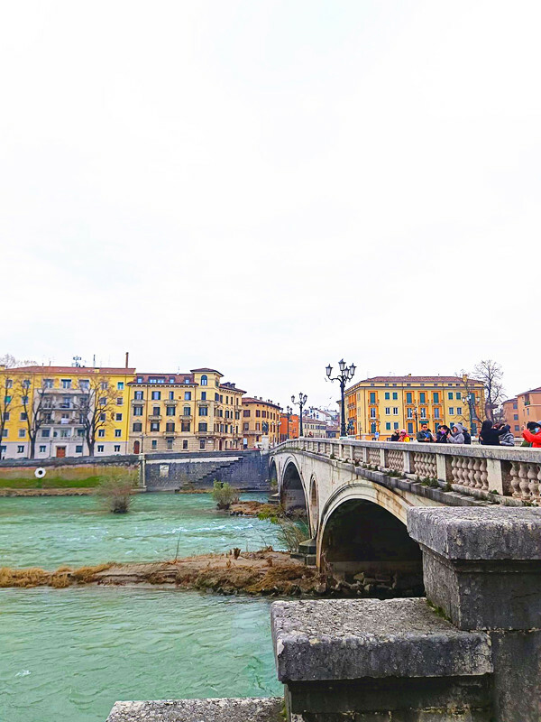 維羅納的外圍有這一條阿迪傑河Adige River,河水清澈乾淨,還能遠眺遠處山坡上的聖彼得城堡,如果時間夠的話也可以去拜訪聖彼得堡,畢竟它也是維羅納著名景點之一,可惜我們時間有限就沒上去拜訪