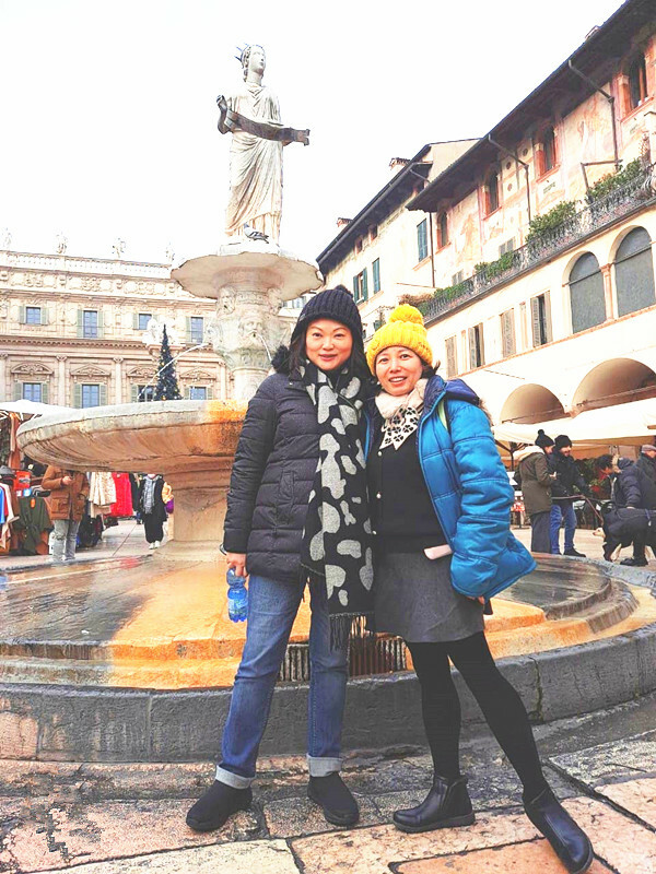 還是先在廣場噴泉前拍照比較實在,忘記身後噴泉的雕像是誰了?就說導遊在講我都沒在聽咩😅,回來努力查了資料才知是建於14世紀的《維羅納聖母像》