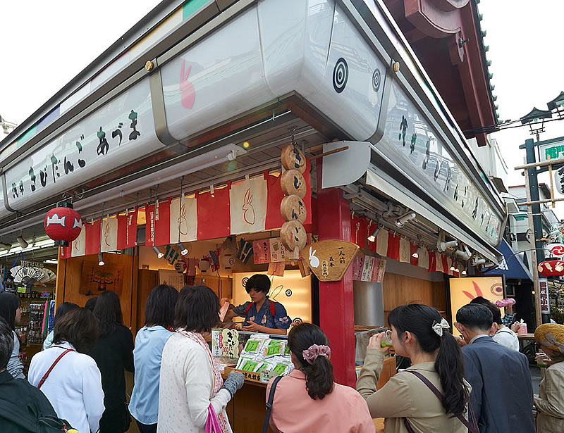 在前往淺草寺參拜的路上會經過商店街,你會發現廣場上其中一家店總是大排長龍,他就是這裡的名店吉備糰子。糰子有點類似台灣的糯米,是日本人非常喜愛的一道傳統點心。吉備糰子店內只賣一種口味,糰子加上黃豆粉後Q黏有嚼勁,建議買完要馬上吃,否則就會因受潮而變得不好吃囉!