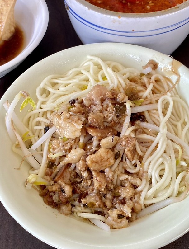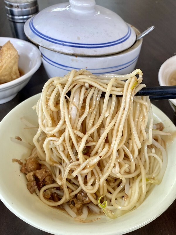 這麵同樣很涮嘴,有一點像記憶中菜市場的肉燥乾麵,麵條像是黃麵微咬勁咀嚼端的麵香不錯,淋上的肉燥不鹹不膩帶著油蔥和肉燥的油甜。