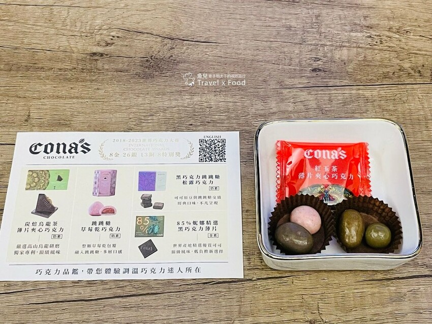 妮娜巧克力萝想城堡不僅硬體迷人,還有暖心的下午茶,一坐下來就有免費的熱茶及巧克力招待試吃,我們一群人邊坐著閒聊,嘴裡同時享受著巧克力帶來的愉悅感,心裡不禁OS:全都打包了啦!