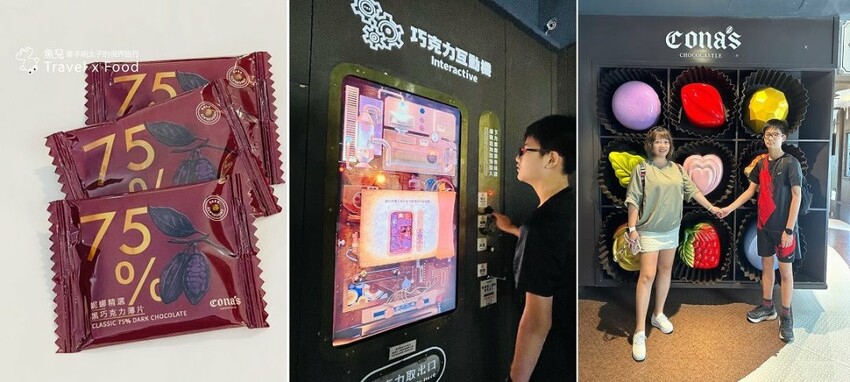 在投幣式機器製作出自己喜歡的巧克力,邊操作邊看過程,學習方法再進階,不僅滿足孩子動手做的樂趣,還能親手做出成品,不得不說,75%苦甜巧克力超好吃!