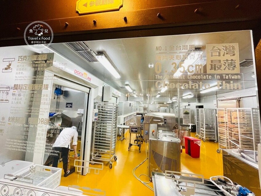 最重要的可可知識+是此行來參觀妮娜的重點行程,這裡有台灣最薄的夾心巧克力,也有非常乾淨衛生的作業空間,現場分享填充、冷卻等製程,比看書還有趣,也學的更快。