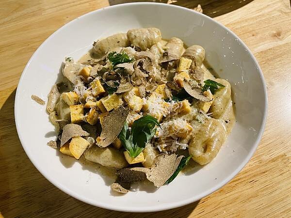 松露奶油麵疙瘩看起來就很不錯,而且松露是一片片沒在客氣的灑在麵上,吃起來濃濃松露味,奶油味算是蠻重的,我個人是比較喜歡奶油味不要那麼重,吃起來會比較清爽,如果你是喜歡濃郁口感的,那應該就會喜歡。