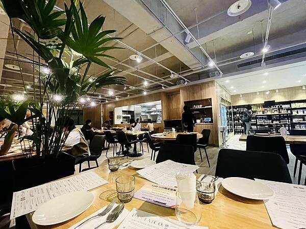 店內很寬敞,建議要事先訂位,因為我們當天是平日晚上是客滿的,還好有先訂位。用餐環境很舒適,有種讓人很放鬆的感覺,有點像在外國那種很輕鬆的餐廳,還有一區專門賣酒還有一些食品的區域。