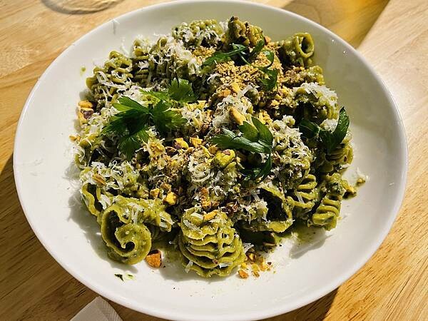 青醬蜂巢麵看起來這一團綠色的好像什麼風味菜?!其實就是蜂巢麵的麵體比較大,加上又是青醬,就變成這樣整盤綠綠的,味道算是還不錯,不過麵算是比較有嚼勁的口感,如果喜歡吃軟軟的口感,可能要跟服務人員說一下。