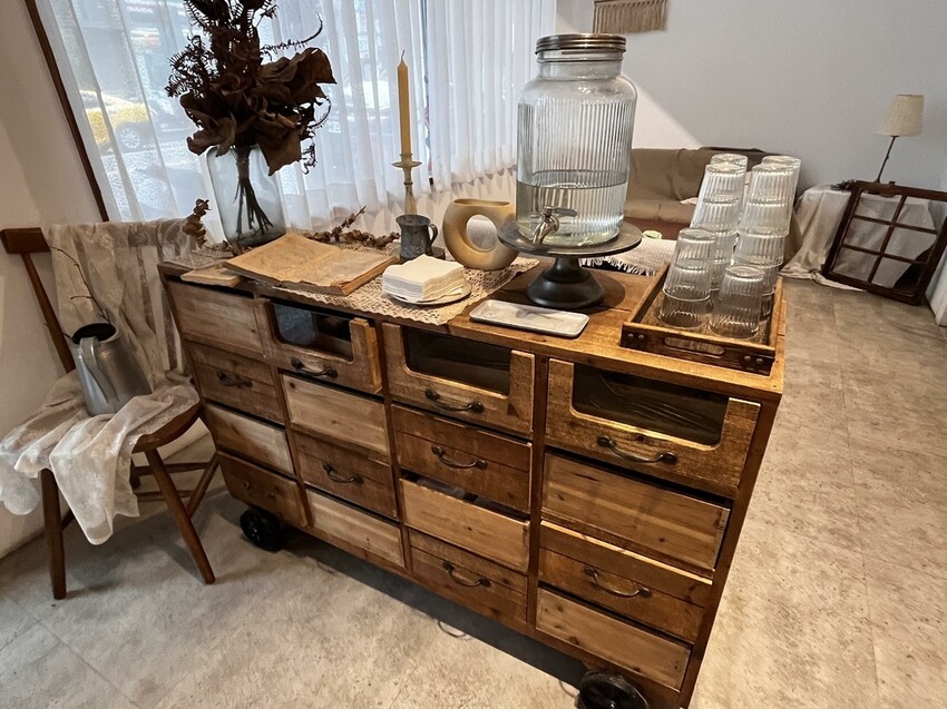 推開進去之後風格真的蠻特別的,我一直覺得自己很像來到什麼女藝術家的家裡,有沙發有鏡子有桌子