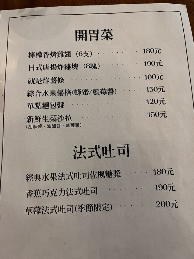 不想吃主餐的朋友,也有開胃菜跟法式吐司可以選擇