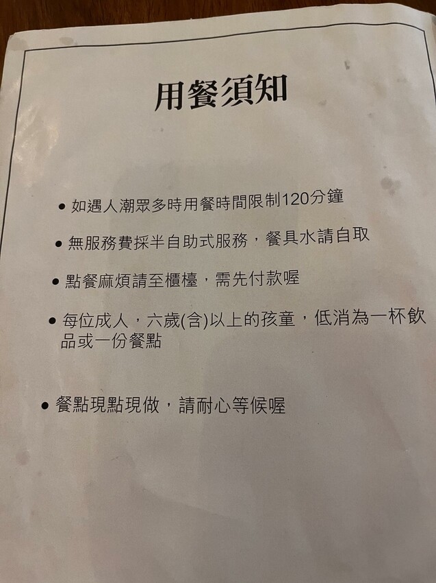 接著來看看菜單的部分吧!【用餐須知】先來! 點完餐之後要先結帳,注意只能現金喔!