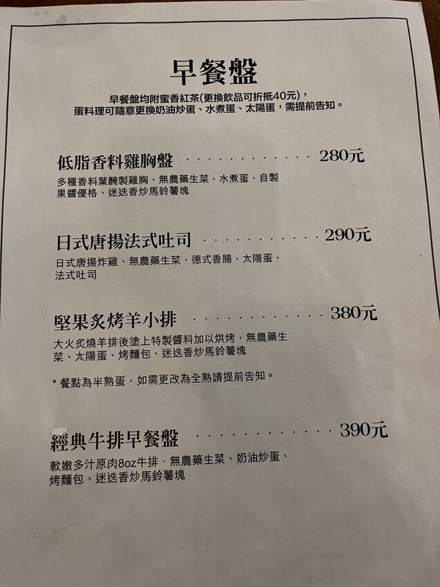 早午餐盤的主餐類別選擇也蠻多的喔! 有一般常見的雞腿排,有唐揚雞,有羊小排,還有經典牛排!!