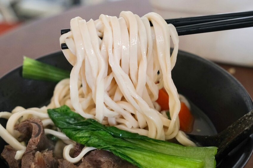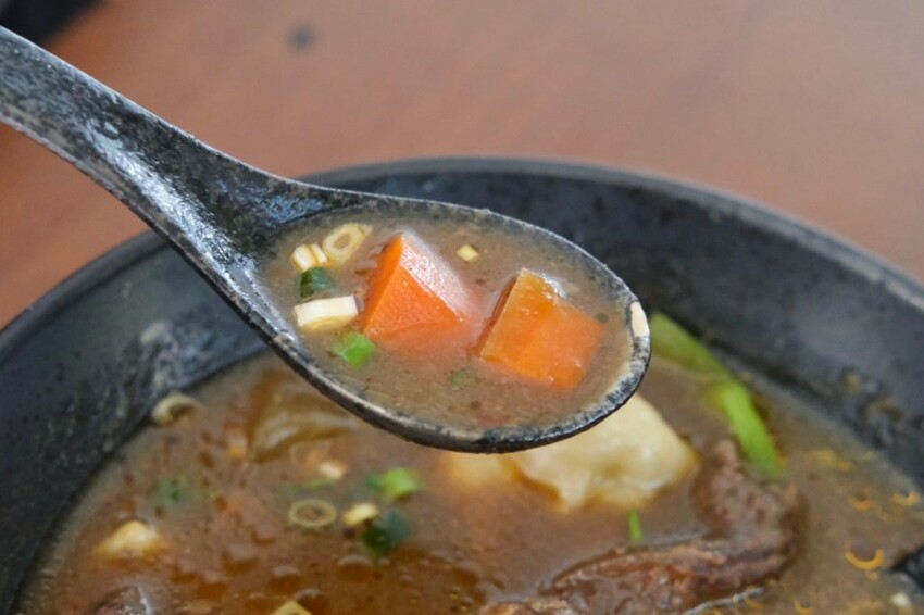 ▼吾皇十三香清燉牛肉麵則是清爽路線,蔬果及中藥材燉煮的湯頭很清甜,牛肉份量很有誠意,還有軟爛的白蘿蔔與紅蘿蔔點綴,伴隨著Q彈好咬的麵條好有飽足感!