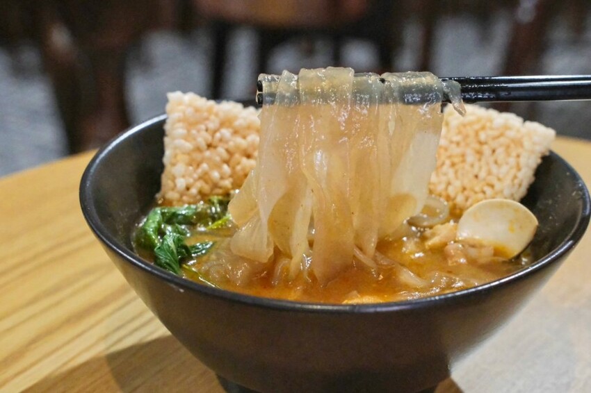▼適合炎熱天氣的萬歲鱸魚酸辣粉,是改良過後的台式酸辣粉,特別附上脆脆米香增加口感,喝起來酸度明顯很耐吃,還有微微的辣度很是開胃,鱸魚塊肉質細緻又大塊,吸著滑順彈牙的紅薯粉條,咕溜咕溜不知不覺就吃光光~