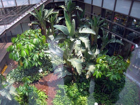 博物館內的中庭種植了許多可可樹,可可就是製作巧克力的原料。