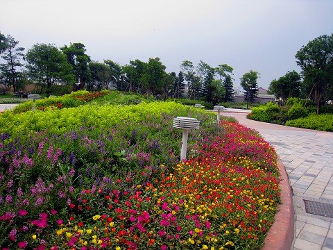 戶外區遍植許多樹種,呈現出綠意盎然的景觀,也栽植許多美麗花兒,讓遊客一入園就有好心情。