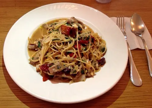 先帶大家來看看KiKi點的餐「辣味拿坡里坦義大利麵」