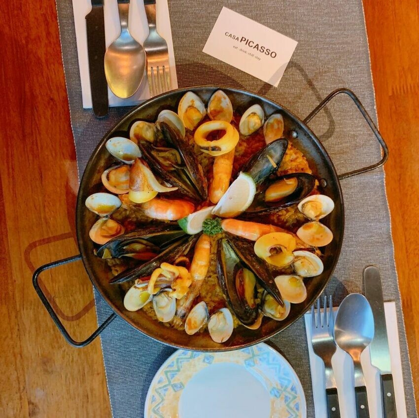 隱身在正濱漁港彩色屋中,這間歐風白色西班牙小酒館從店內擺飾就可看出對藝術家畢卡索的深愛,舊舊的磚牆裝潢,二樓是藝術品畫室展覽,空間不大但有大片景觀窗面向漁港,三樓也有用餐座位,更適合團體包場餐酒聚會。從西班牙小碟菜Tapas、海鮮飯paella、輕食甜點多樣選擇,菜單上更用masterpiece(傑作)來形容主廚推薦餐,藝術品味與美食風味結合起來竟如此對味,推薦傍晚時分先在餐廳外欣賞彩色屋外的夕陽金黃海水,再進入畢卡索的藝術世界,享用異國海味料理。