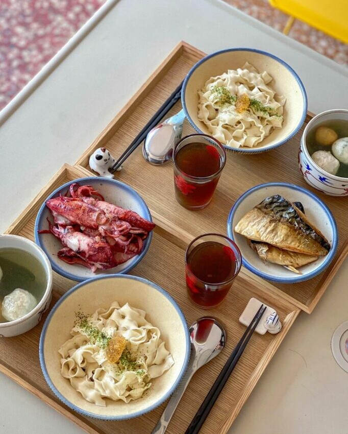 正濱漁港隱藏美食-飛魚卵乾拌麵,主廚黃彰琦也有釀酒師與侍酒師身分,融合海味與餐酒元素的創新料理是下麵獨有的基隆海味,低消一碗麵還招待一杯house wine(招牌酒),在正濱漁港彩色屋旁品嘗升級版地味美食,輟一杯微醺酒水。另一招牌菜「下麵好潮」,乾拌麵+南洋風味漁夫鍋組合餐,須要提前三天預約,老闆才能準備新鮮海味上桌。