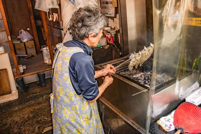 魚豐是早上九點開門,一開門就可以先來拿號碼牌,除了鰻魚飯也有販售一些烤海鮮,鰻魚飯一盒是2000元日幣,老實說不能算是便宜,但不少吃過的人都覺得味道非常棒,老奶奶給號碼後會跟你說大概多久來拿,可以先去旁邊逛逛
