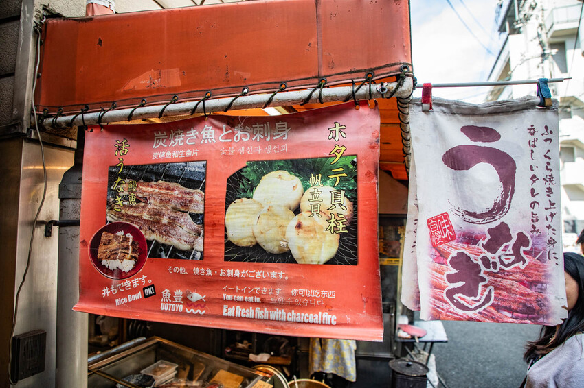 鮮魚魚豐就位在黑門市場旁的巷子裡,旁邊是另一家黑門市場名店:黑銀金槍魚店,店面看起來很像一般的住家,然後攤位前擺了很多鮮魚,魚豐其實是賣海鮮燒烤,不過鰻魚飯賣得特別好就是了