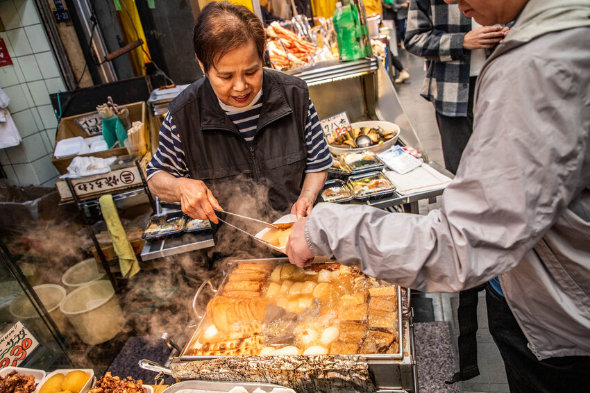 回歸正題,石橋食品的關東煮真的超級有名,一路從市場口走到市場尾,很多人都是手上拿著關東煮站在路邊吃,關東煮的鍋子就放在店門前,路過就會聞到關東煮的香氣,鮮甜的高湯中塞滿了關東煮的料,除了蔬菜白蘿蔔,裡面還有許多魚漿類的製品,這麼多材料一起煮絕對是好吃的啦!