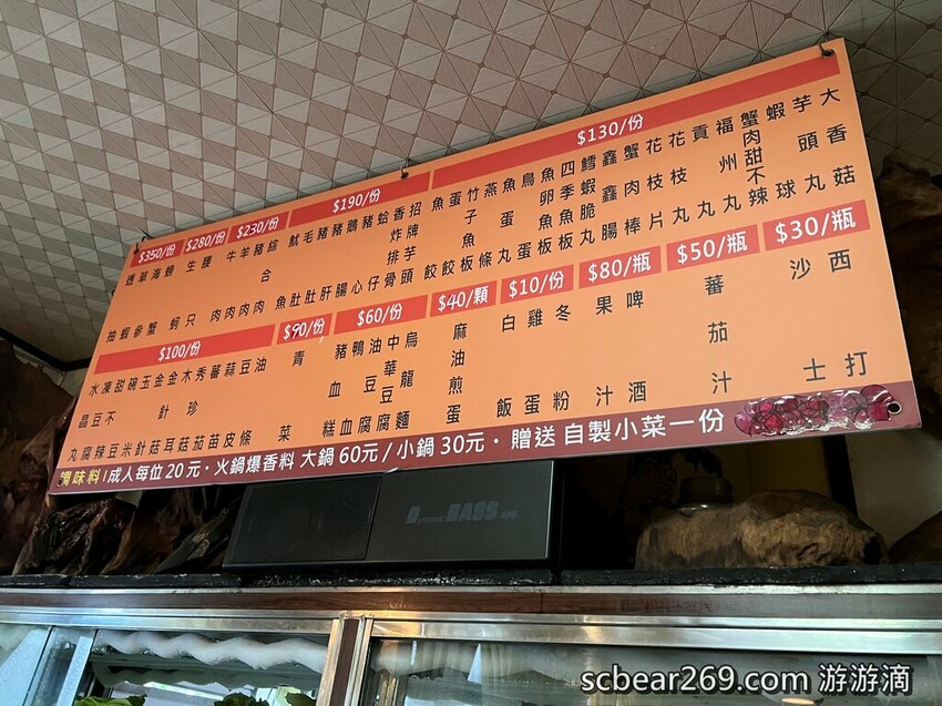 肉類、海鮮、內臟類價位更高,約$190~$350都有