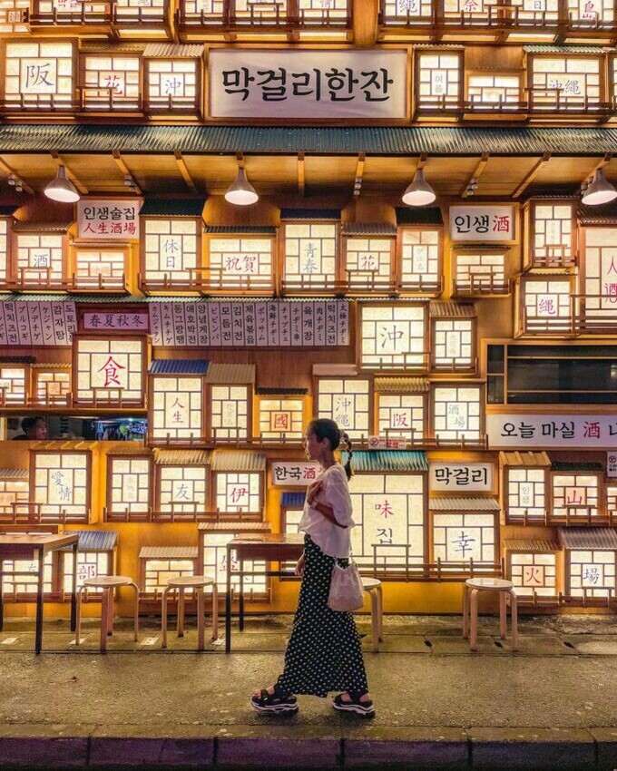 接著,要推薦給大家的就是神隱少女禁地,「人生酒場」沖繩居酒屋啦!既然來到日本就要體驗一下沖繩夜生活,這是韓國歐巴開的店~又日又韓的居酒屋,說到日本居酒屋,多數都是提供日本在地料理,但是這家人生酒場是一間以煎餅和馬格利酒為主的韓國餐廳,只要是你想的到的煎餅、石鍋拌飯、炸雞、火鍋、酒類等等通通有,晚上有會中文的服務生可以點餐,而且還是24小時營業,無論何時去,從早到晚都是適合IG打卡的景點呢!