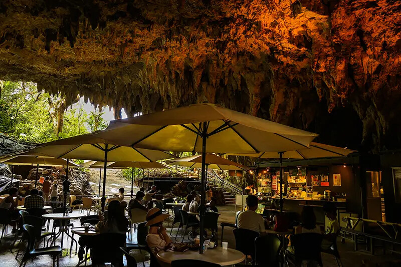 沖繩以鐘乳石地形聞名,你可能聽過海景、山景、夜景咖啡廳,但是你一定沒去過建在鐘乳石下的咖啡廳!Gangala位在知名景點玉泉洞旁邊,除了可以欣賞特殊鐘乳石地形外,還可以喝到沖繩限定的35咖啡喔!35跟「珊瑚」的日文發音相似,每賣出一杯咖啡,就捐3.5%的營業額投入珊瑚保育活動,是不是既有特色又意義十足呢~