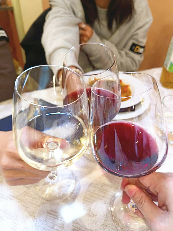 領隊招待我們喝紅酒,大家都開心舉杯慶祝,為這一餐畫下完美句點🥂。如果來維羅納旅行,至少這家百年教堂披薩不會踩雷,不妨列入考慮喔!