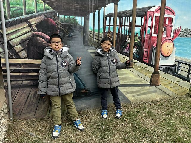 最後佐佑在鐵道邊,向麋鹿小火車和導覽阿姨說再見。