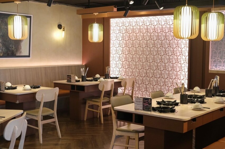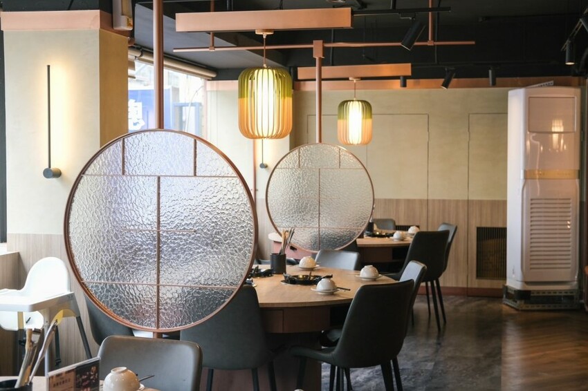 ▼【羊鮮森】用餐環境充滿質感風格,以金屬框搭配溫柔的藍橘色調,帶來時髦現代風格的設計感,包含兩~六人的座位,還有富有隱私感的獨立包廂區,有需要的話可以提早預約。
