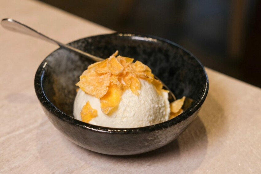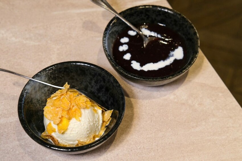 ▼套餐的飯後甜點有冰淇淋與紅豆紫米粥可選擇,加入麥片的冰淇淋甜蜜消暑,紅豆紫米粥有提供奶精球可自己調整甜度。