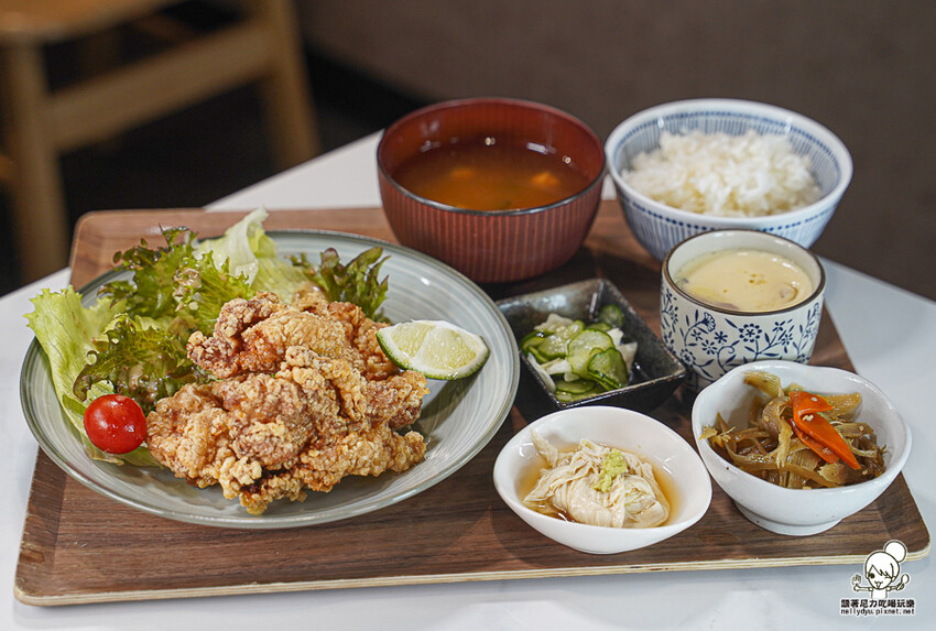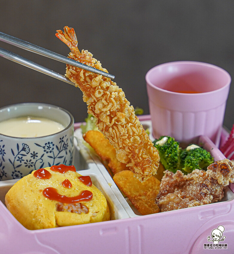 有美味的蛋包飯、招牌唐揚雞、炸蝦、炸薯塊、茶碗蒸