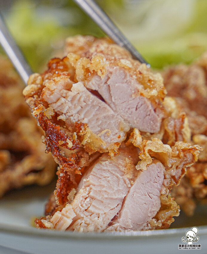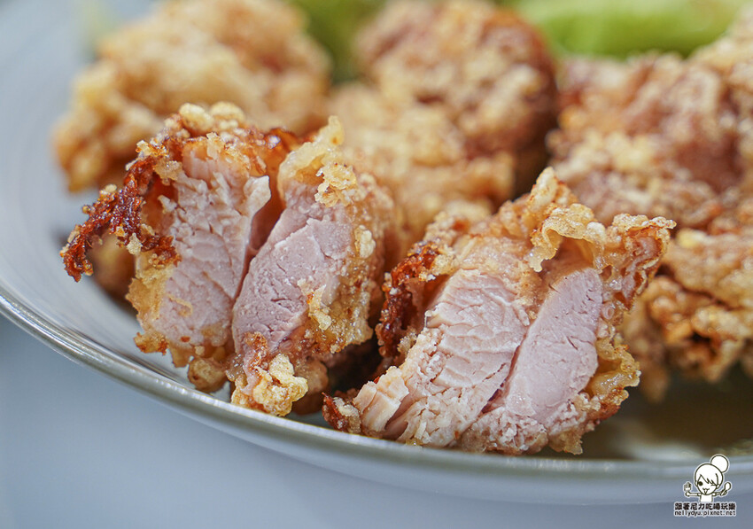 油炸處理很細膩,咬下帶有細緻酥脆與雞腿肉香甜滋味