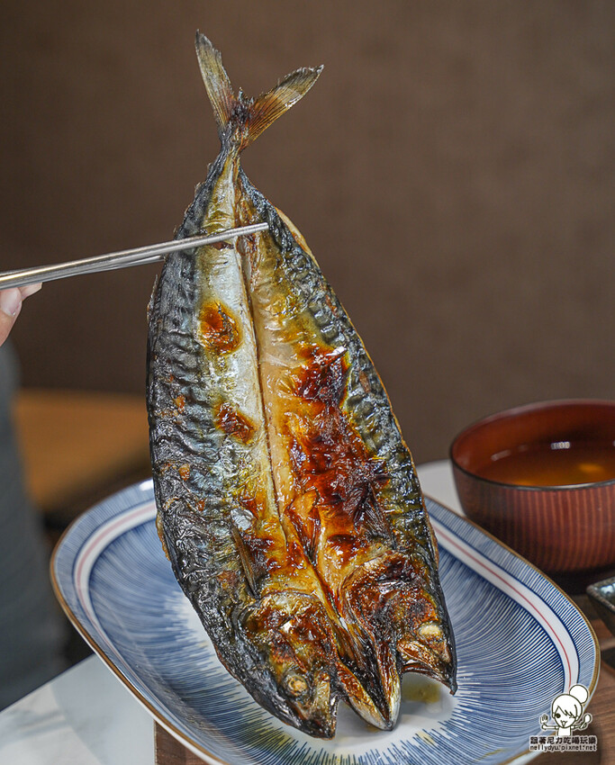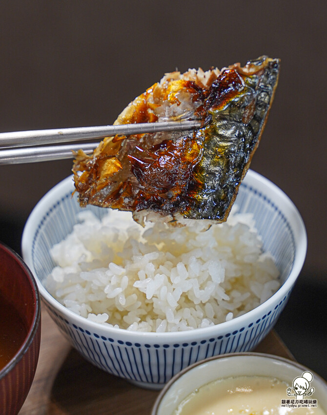 鯖魚一夜干精心挑選過,不死鹹外皮烤到很酥脆