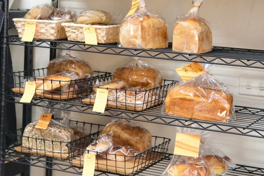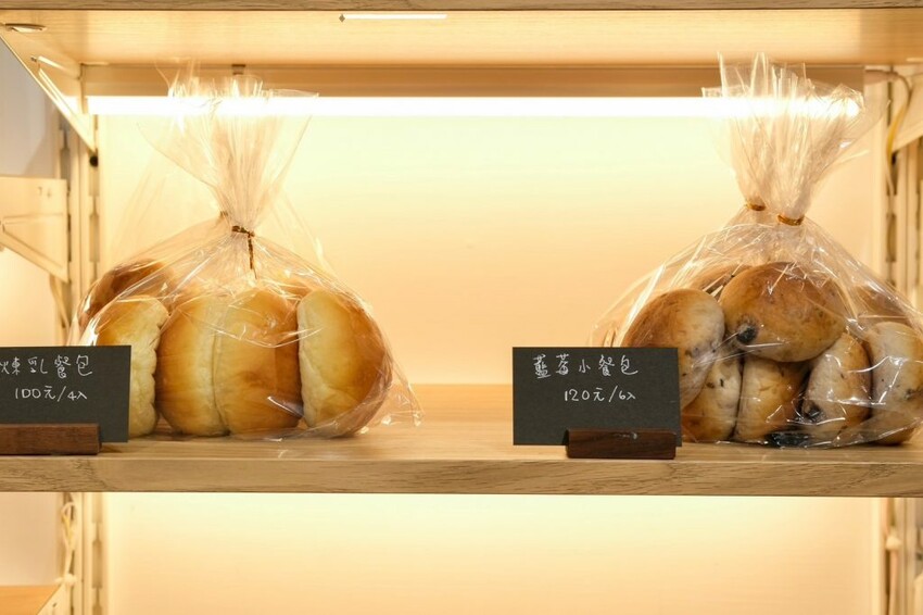 ▼【塔可手作烘焙】櫃台後擺放被預訂的滿滿麵包,提供LINE群組預留以免太晚買不到,以及外送服務不用出門就能吃,幸運的話還有每日限量的優惠折扣麵包,讓小資族們可以省錢享受美味。