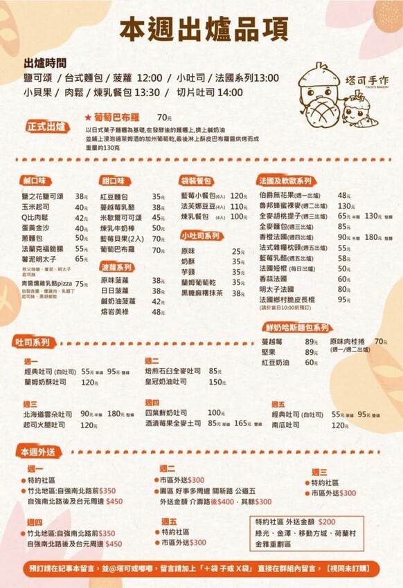 提供外送服務,外送區域區域 新竹市區/香山/園區/竹北等、每區外送金額會不一樣,詳細可加群組或來電