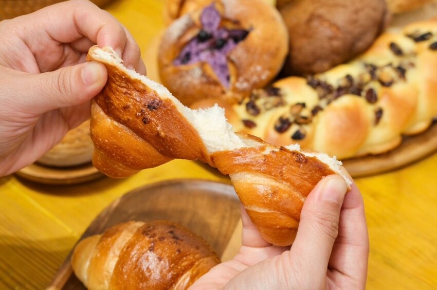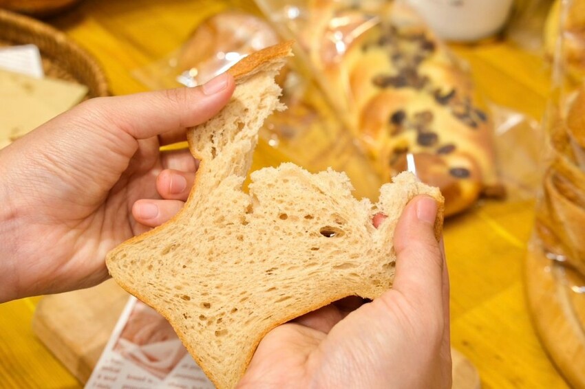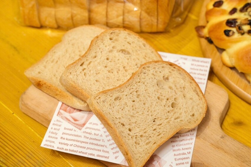 ▼吃了不脹氣的春日減糖吐司,加入熊本高纖低糖預拌粉、低糖質麵粉、無添加精製糖製作,外皮脆而不厚很好入口,在咀嚼下散發出輕輕香氣,適合減醣的人或是家中長輩有在控制血糖也能吃!