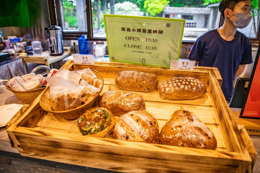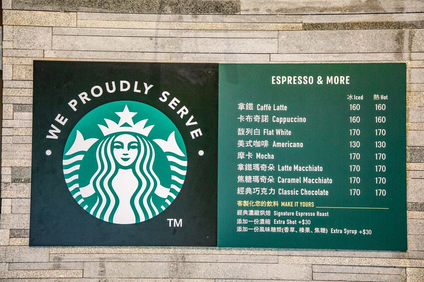 陽明山天籟渡假酒店聯名的星巴客價格跟一般門市差不多,拿鐵160元、卡布奇諾160、美式咖啡130元、焦糖瑪奇朵170元、摩卡170元等等,不過這邊沒有提供星冰樂跟氮氣咖啡,也沒有點心三明治之類的,但櫃台有賣天籟自製的歐包