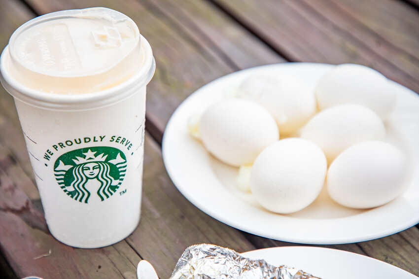 煮個20分鐘就差不多可以拿起來降溫囉,溫泉煮出來的雞蛋就是特別的甜,吃起來有溏心蛋的FU,然後可以邊喝星巴克邊吃溫泉蛋跟地瓜,應該是都市星巴克沒辦法享受的事情,真的是一個很有趣的體驗呢!