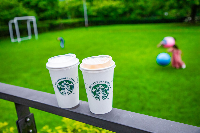 基本上咖啡製作的過程都跟外面星巴克一模一樣,不會因為在溫泉飯店裡就打折扣,連焦糖瑪奇朵的拉花也是一模一樣的,不過在溫泉飯店綠意盎然的環境喝星巴克咖啡是蠻棒的體驗,而且畢竟不是市區,買咖啡不太需要排隊啦!