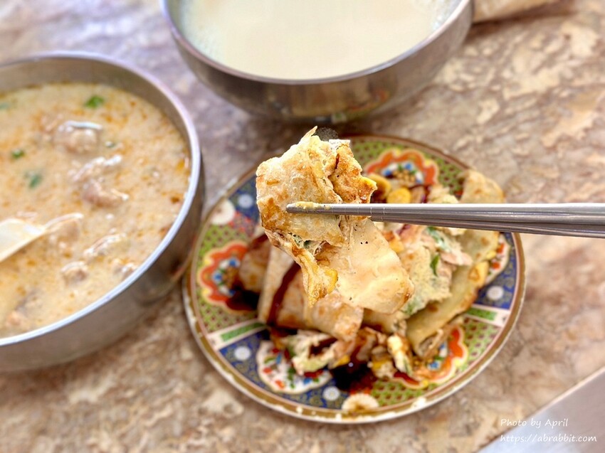 手工蛋餅是酥皮的,裡頭配上的是蔥蛋,淋上一點醬油膏搭配吃挺香。