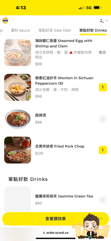 椒香紅油抄手98元,有帶點椒麻香,不過記憶點的口味比較一般。