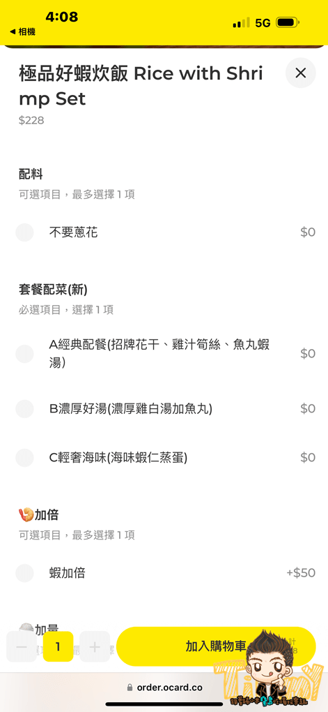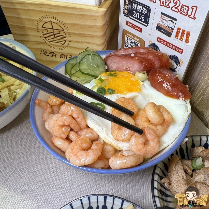 招牌好蝦蛋飯聽說是原本他們的極品好蝦炊飯,被網友加了荷包蛋及香腸後變成IG超紅美食照XD