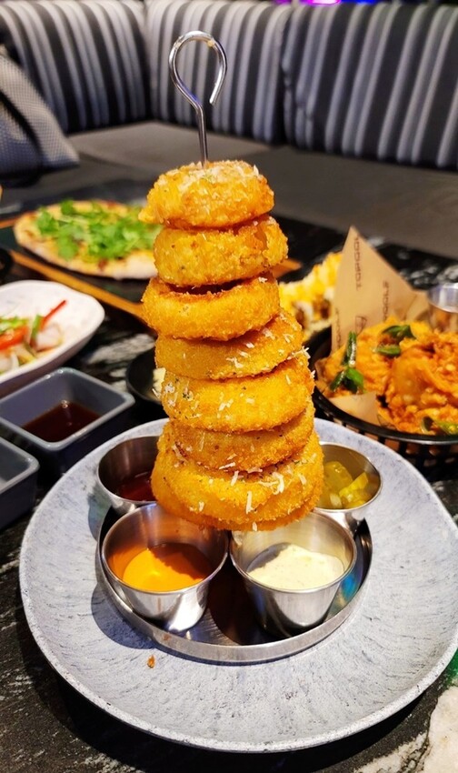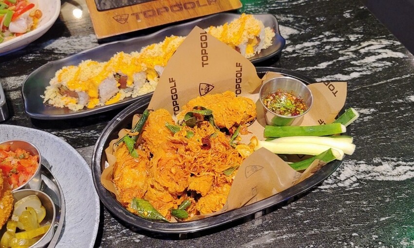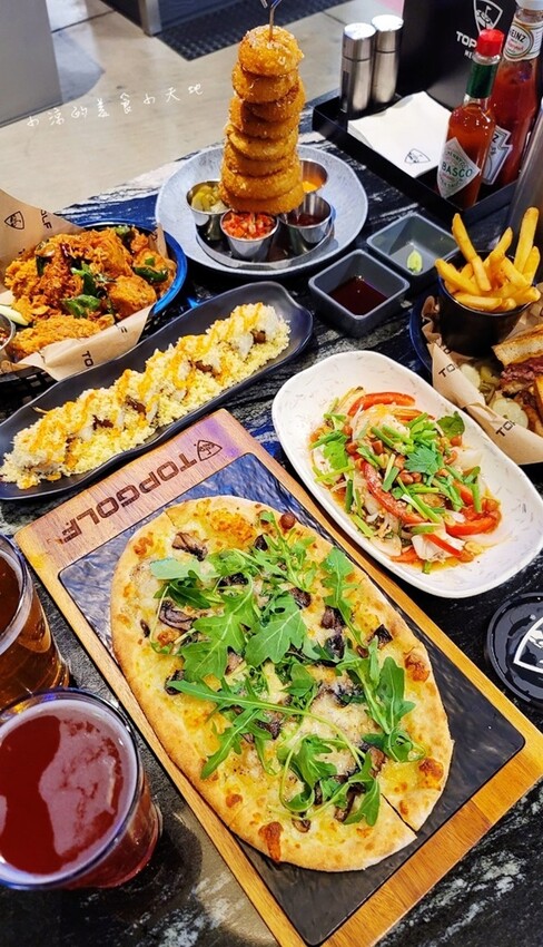 Topgolf Megacity這邊的餐點很多元化,除了有泰式料理、更多了美式及其他異國料理可選唷!!接下來就來看看我們點了啥? 洋蔥圈不管大人小孩都很愛好這一味,炸得酥脆酥脆就好吃。