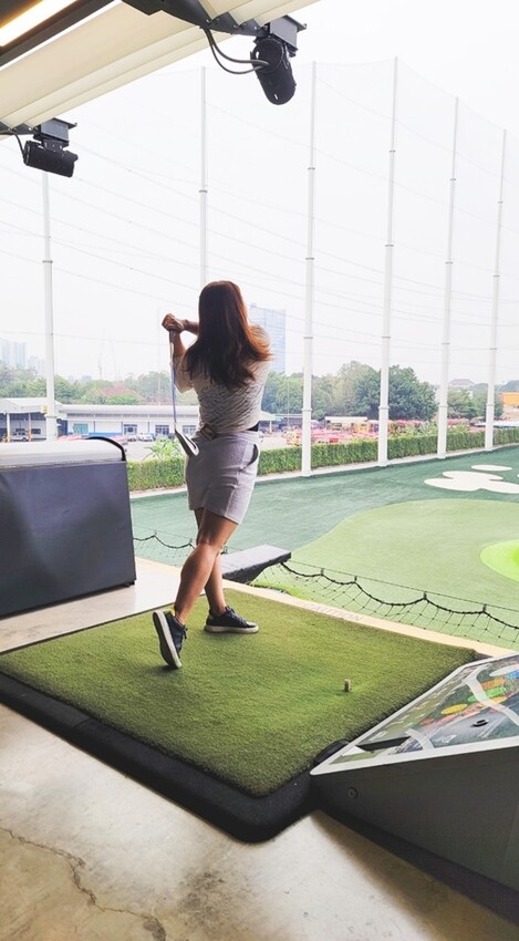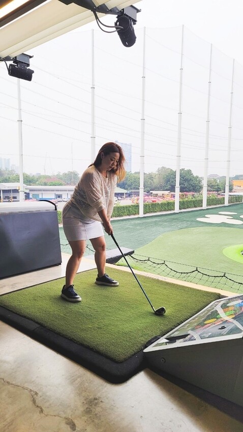 確認位置後,不免先來張假掰的網美照,Topgolf打高爾夫球的環境場地都規劃的很舒適且不擁擠,重點還能拍出不少美照~~