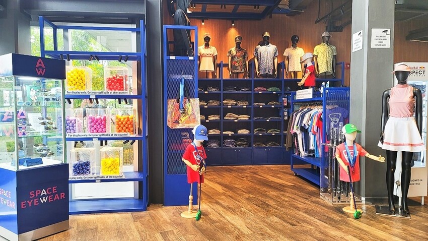 櫃檯周邊還有提供各式高爾夫球相關服飾,如POLO衫、帽子、短褲、帽T等大人小孩款都有販售唷!