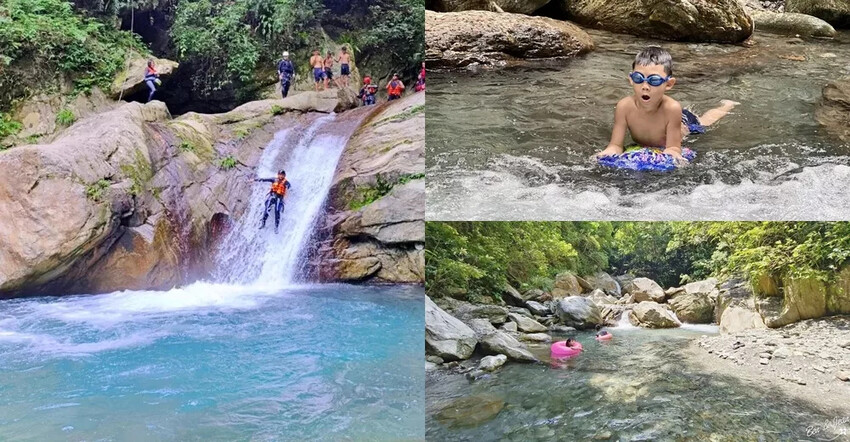 金岳瀑布》步行5分鐘親子玩水秘境,沁涼瀑布、溯溪跳水天堂